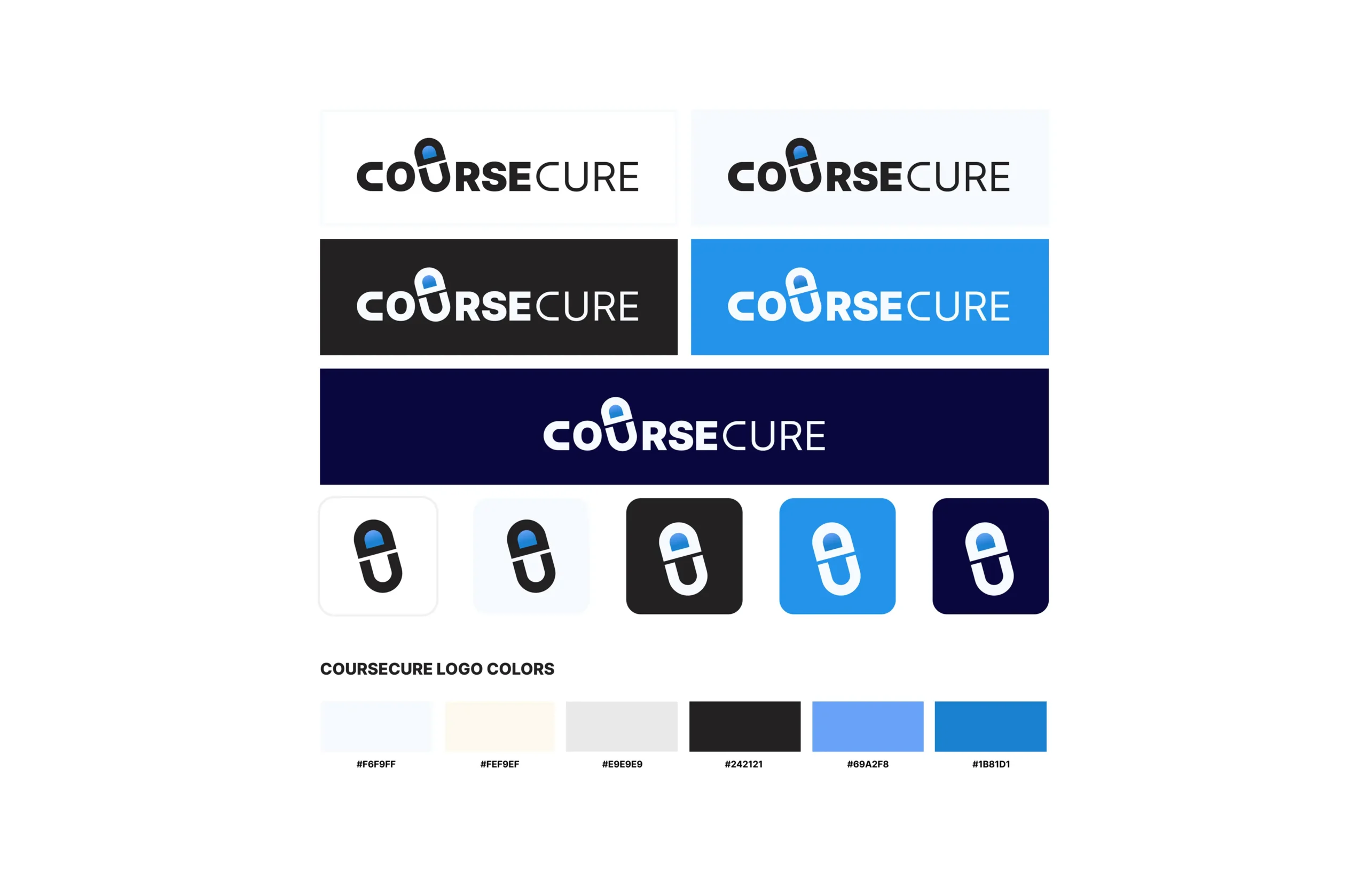 In this project, I first designed the CourseCure logo with a creative twist by transforming the “U” in “Course” into a pill shape, symbolizing the idea of “curing” the challenges for making online courses. This design visually reinforces the brand’s mission of providing effective online learning solutions.